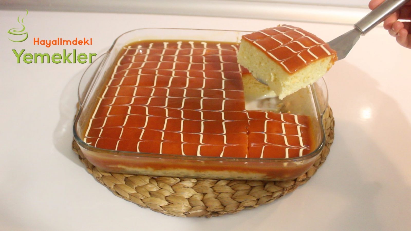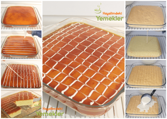 - Karameli için Şekeri tencereye alın arada karıştırarak eritmeye başlayın şekerin rengi sarardığında tencereyi ocaktan alın içindeki topaklanmalar eriyene kadar iyice karıştırın ve tekrar ocağa alın ( dikkat edin yakmayın ) ve üzerine tereyağını ilave edip iyice karıştırın önce 1 su bardağı suyu ilave edip karıştırın şeker tamamen eriyince ayrı bir kasede nişasta ve 1 su bardağından 2 parmak eksik suyu çırpın kaynayan karamele ilave edin bir kaç dakika kaynatıp ocaktan alın