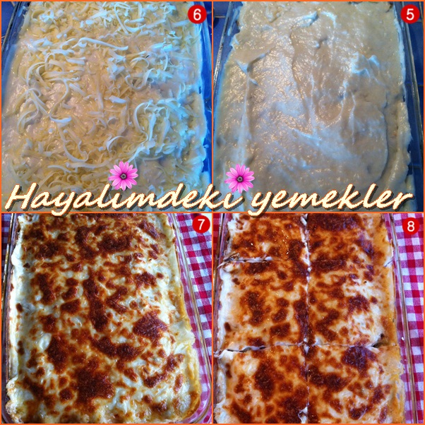 • Başamel sos icin yagi tencereye alip eritin unu ilave edin biraz kavurun sutu ilave edip karaistira karistira kaynatin kaynadiktan sonra cok az tuz ekleyin  ve ocaktan alin (topaklanma olursa blrendirdan gecirin, basemel sosun daha hafif olmasini istiyorsaniz hic yag kullanmadan sut ve unu iyice cirpip ayni sekilde karistirarak kaynatin)