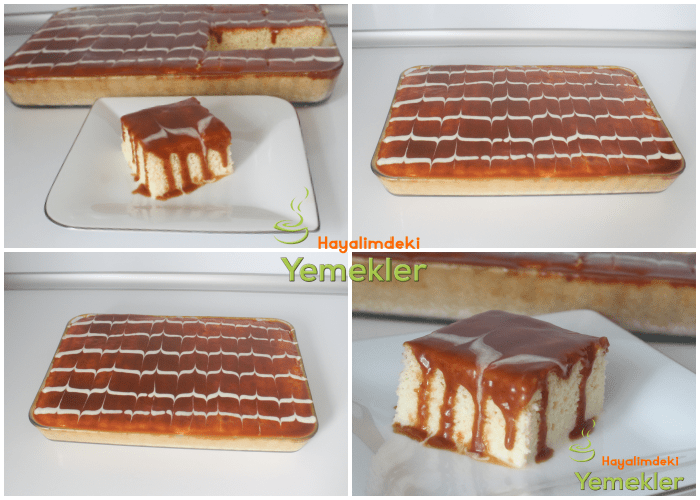 - Üzeri için süt,krema ve toz şekeri iyice karıştırın tirileçe kekinizin üzerine kepçe yardımıyla yavaş yavaş yedirerek dökün ve buzdolabına kaldırın,