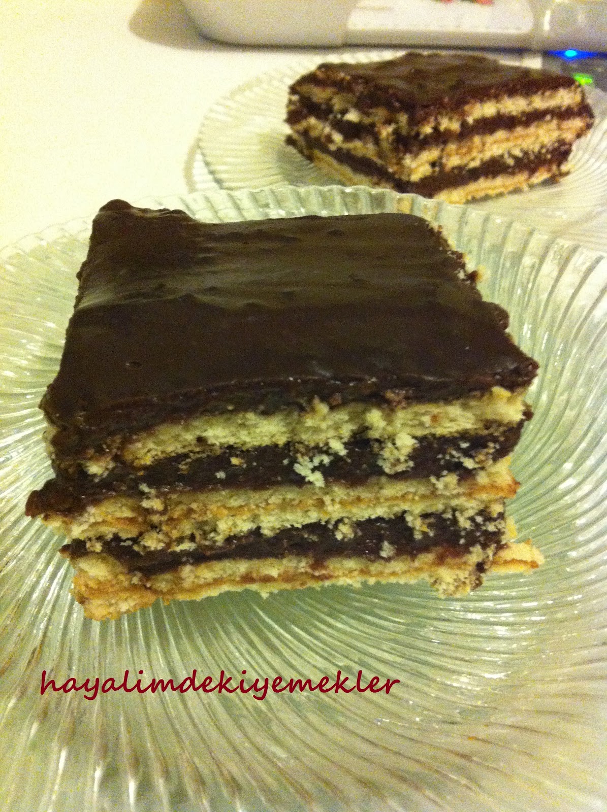 BUSKUVILERI SUTE BATIRIP CIKARAK ISLATIN.(buskuvilerinizi cok fazla islatmayin hamur gibi olur) IKI KAT HALINDE TEPSIYE DUZELTIN ARASINA KAKAOLU KREMAYI DOKUN ONUN USTUNE 2 KAT DAHA BUSKUVI ISLATIP ARASINA KAKAOLU KREMAYI KOYUN DOKUP YAYIN