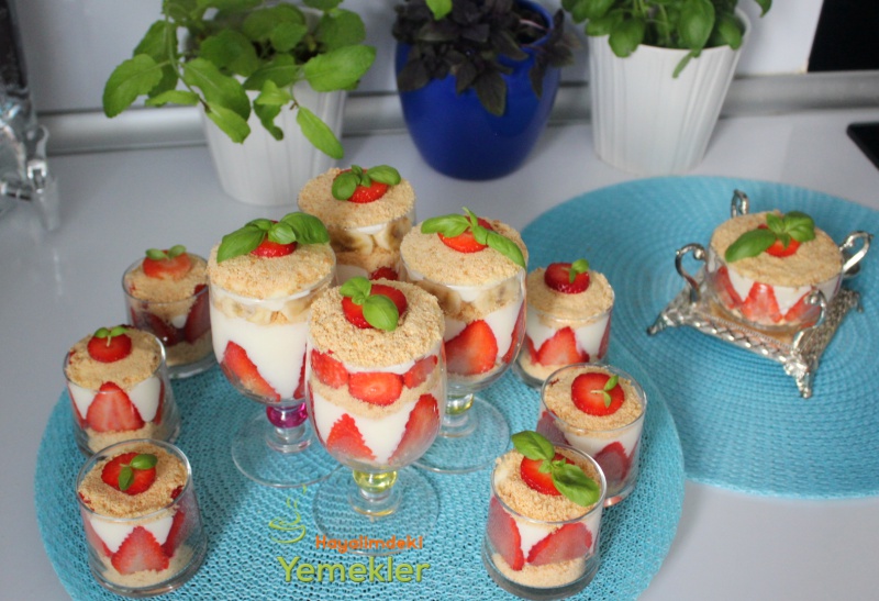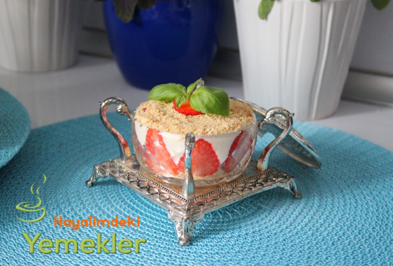 - Bisküvileri rondadan çekin bir sıra bisküvi bir sıra çilek üzerine tekrar bisküvi yerleştirin istediğiniz gibi süsleyin servis yapın.