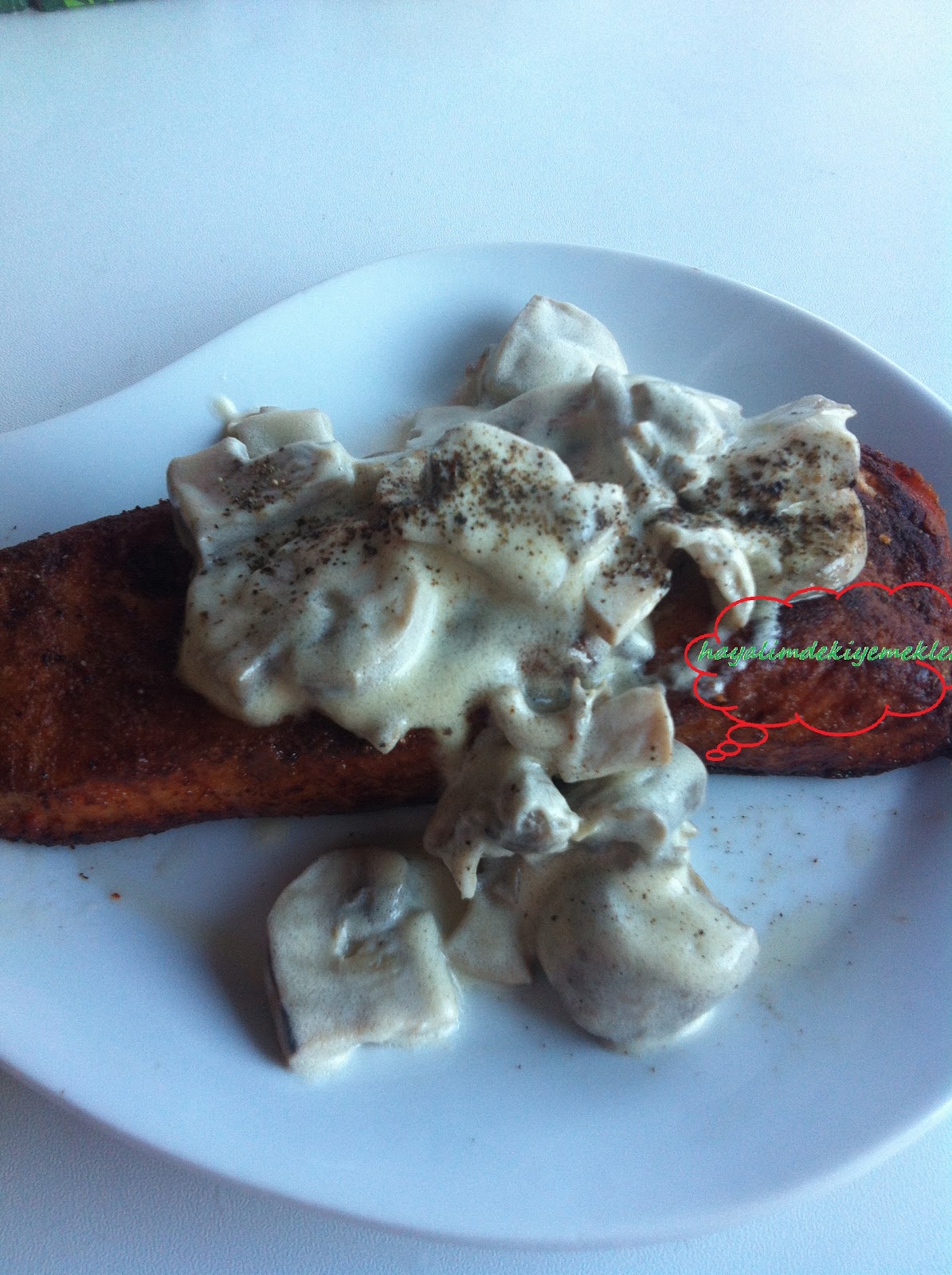 Degisik balik tarifleri arayanlar icin krem fraichele (fres) yapilan mantar soslu somon baligi tarifimi sizlere tavsiye edebilirim.hem mideye hemde goze hitap eden mantar soslu somon tarifimi sizlerle paylasiyorum