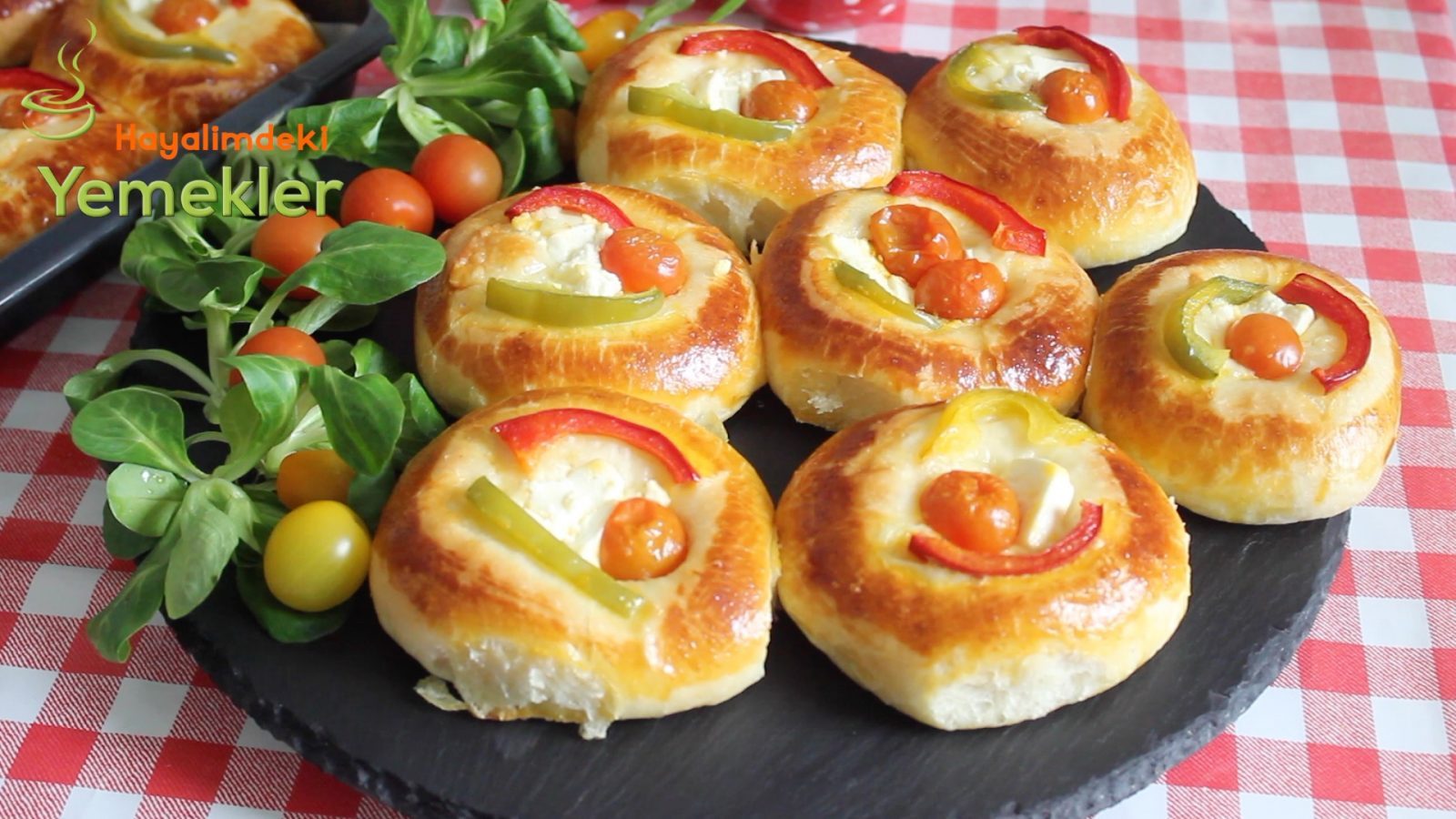 Dinlenmiş olan bezelerin üzerine çay bardağının yardımıyla bastırarak çukurlar oluşturun açmış olduğunuz çukurların içersine İnce dilimlenmiş kırmızı biber yeşil biber domates beyaz peynir ve kaşar peyniri yerleştirinyumurtanın sarısını sürün isteye göre Susam dace pişirebilirsiniz önceden satılmış 200° fırında pişirin (benim poğaalarım 22-25 dakika arasında pişti)